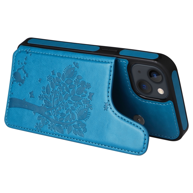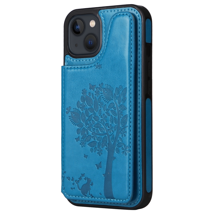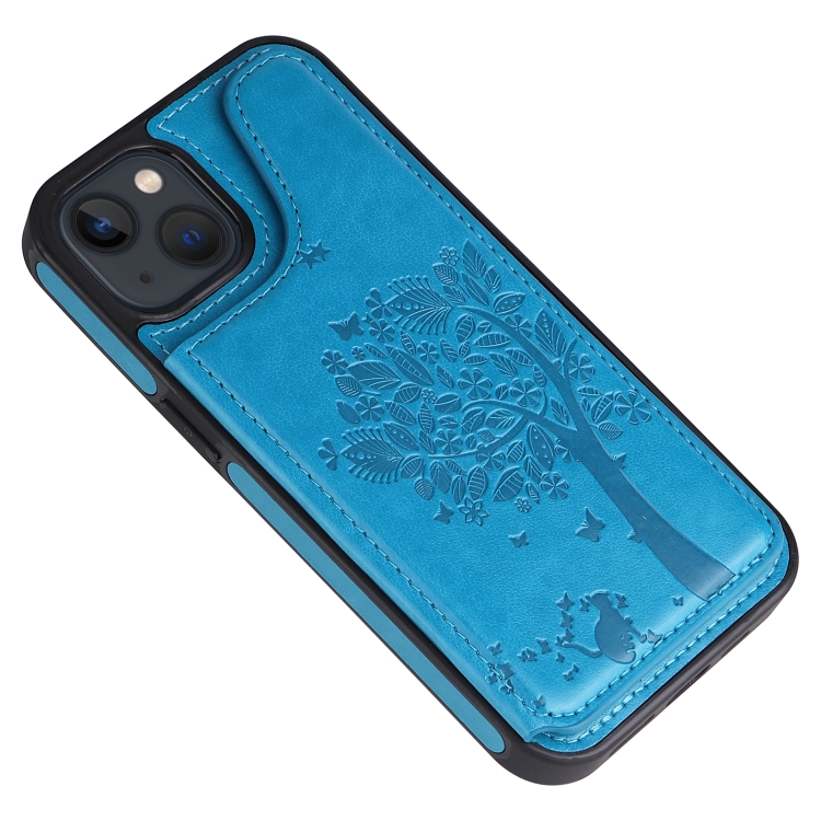 Estuche a Prueba de Golpes con Patrón de Árbol de Gato para iPhone 13 Mini (Azul)