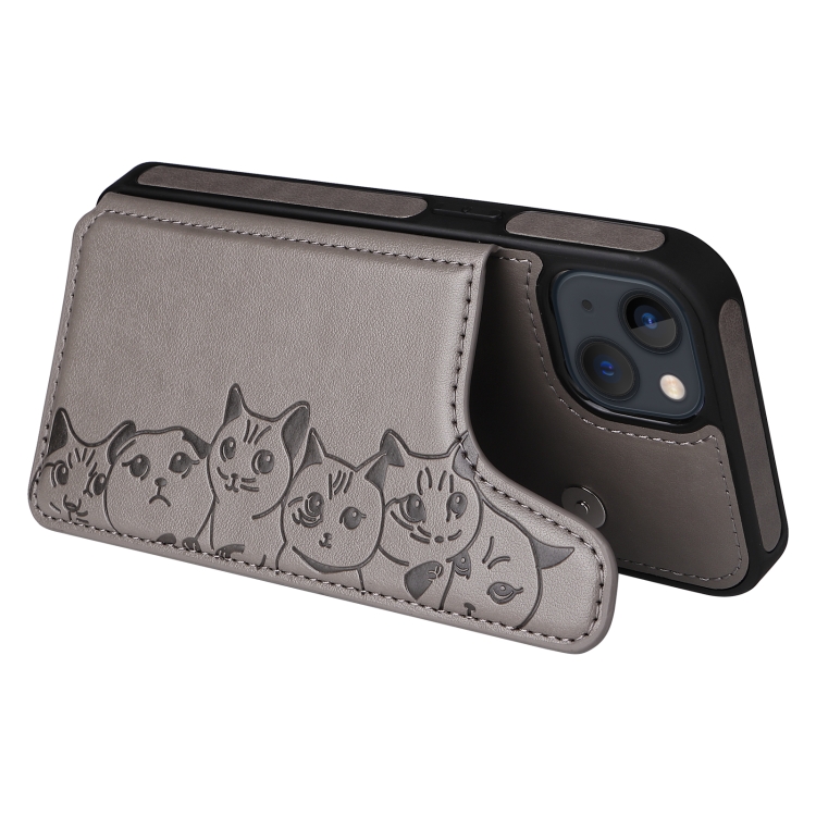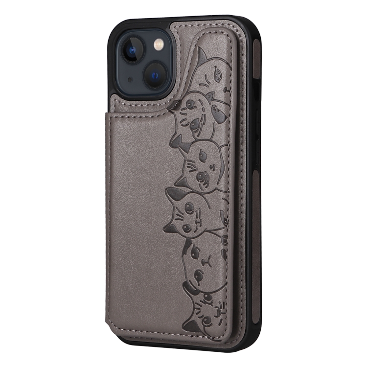 Estuche a Prueba de Golpes Patrón de Estampado Seis Gatos para iPhone 13 Mini (Gris)