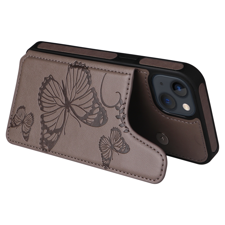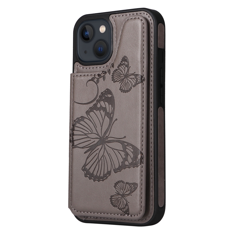 Estuche para iPhone 13 Mini a Prueba de Golpes con Patrón de Mariposa (Gris)