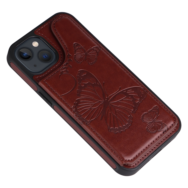 Estuche a Prueba de Golpes para iPhone 13 Mini Patrón Mariposas (Marrón)