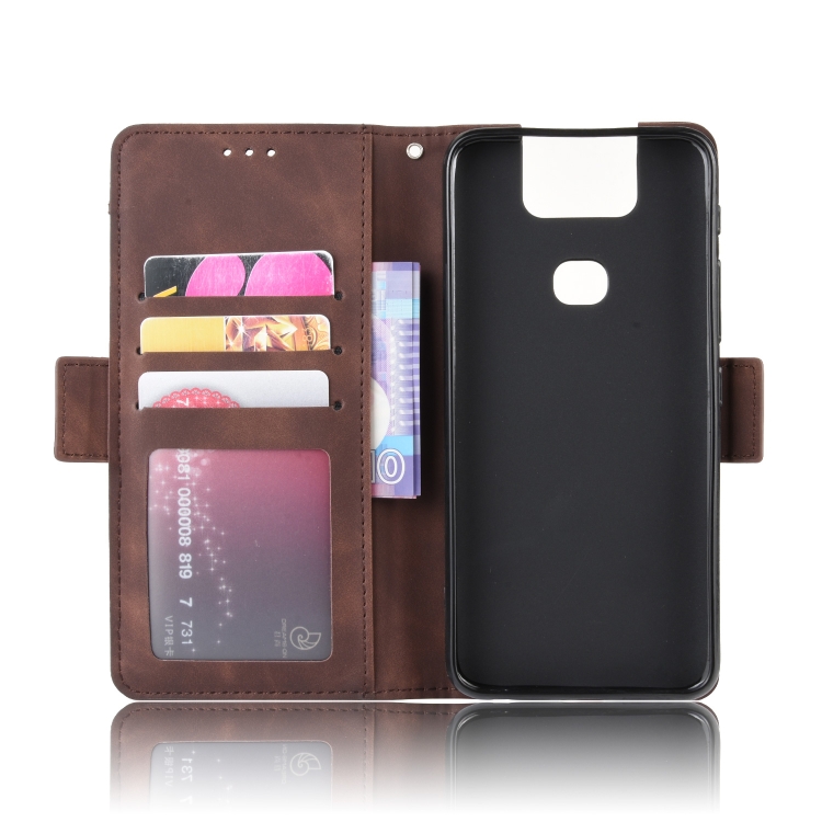 Estuche de Cuero con Patrón de Becerro Skin Feel Estilo Billetera para Asus Zenfone 6 Zs630Kl con Ranura para Tarjeta (Marrón)