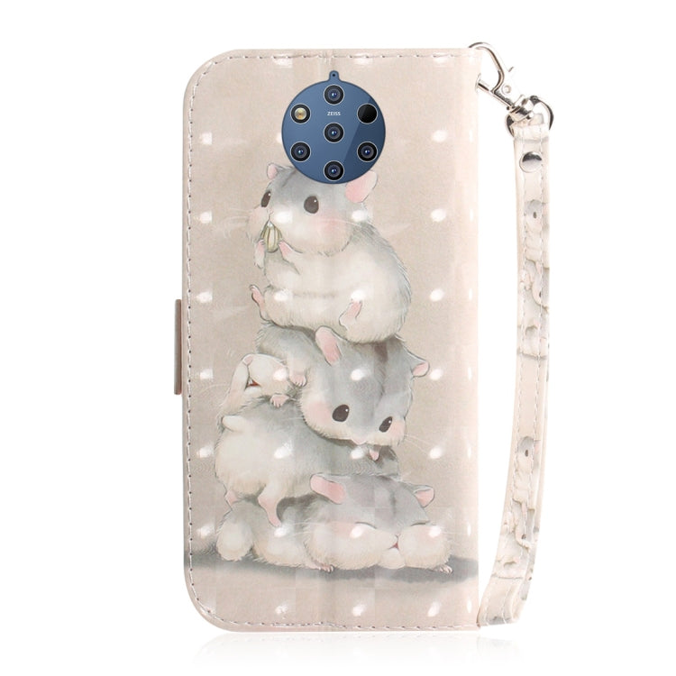 Estuche de Cuero con Tapa Horizontal y Dibujo 3D Ardillas para Nokia 9 con Soporte y Ranuras para Tarjetas