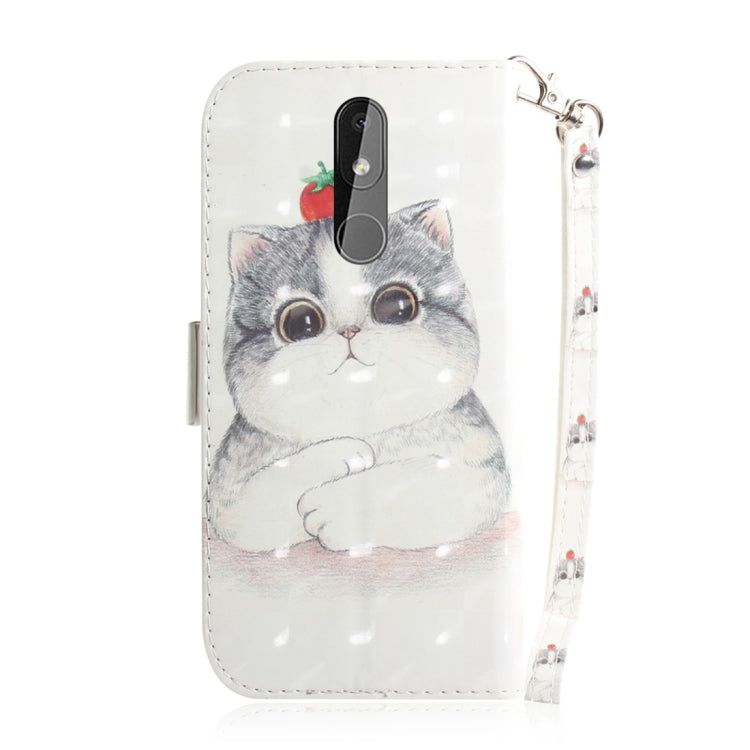 Estuche de Cuero con Tapa Horizontal para Nokia 3.2 con Dibujo de Gato 3D, Soporte y Ranuras para Tarjetas