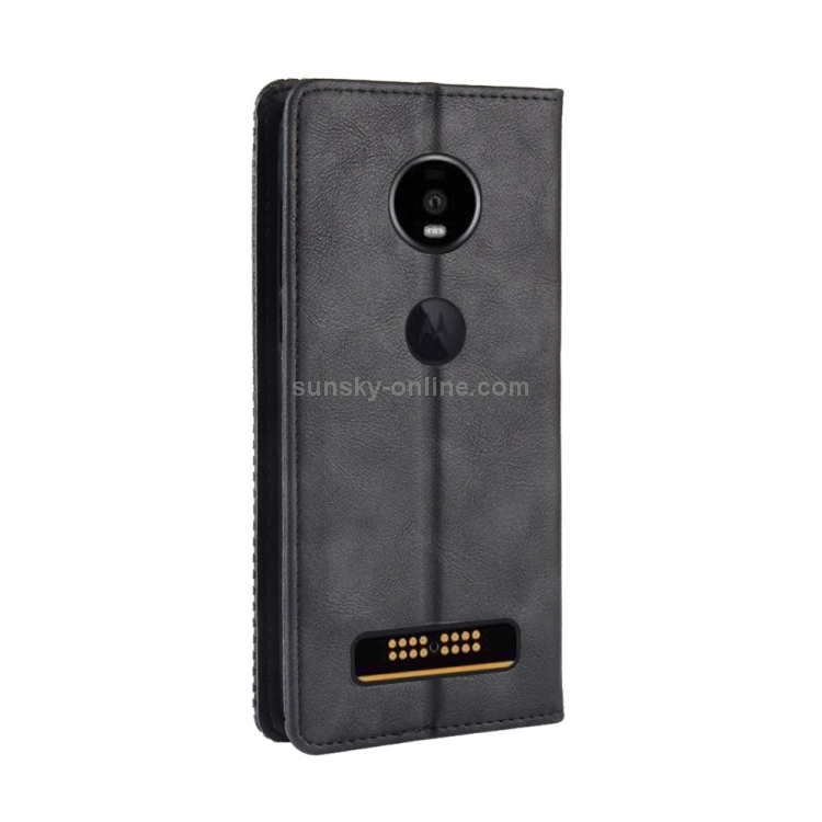 Estuche de Cuero Moto Z4 Play con Tapa Horizontal, Hebilla Magnética, Soporte, Ranuras y Marco de Fotos (Negro)