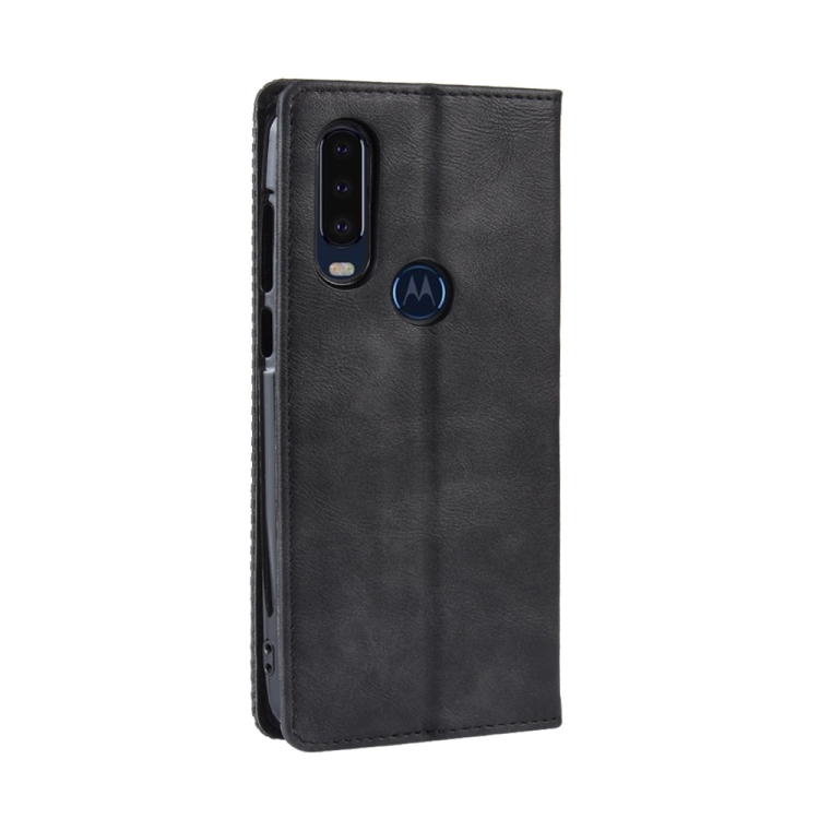 Estuche de Cuero Horizontal Motorola One Action con Hebilla Magnética, Soporte, Ranuras para Tarjetas y Marco de Fotos (Negro)