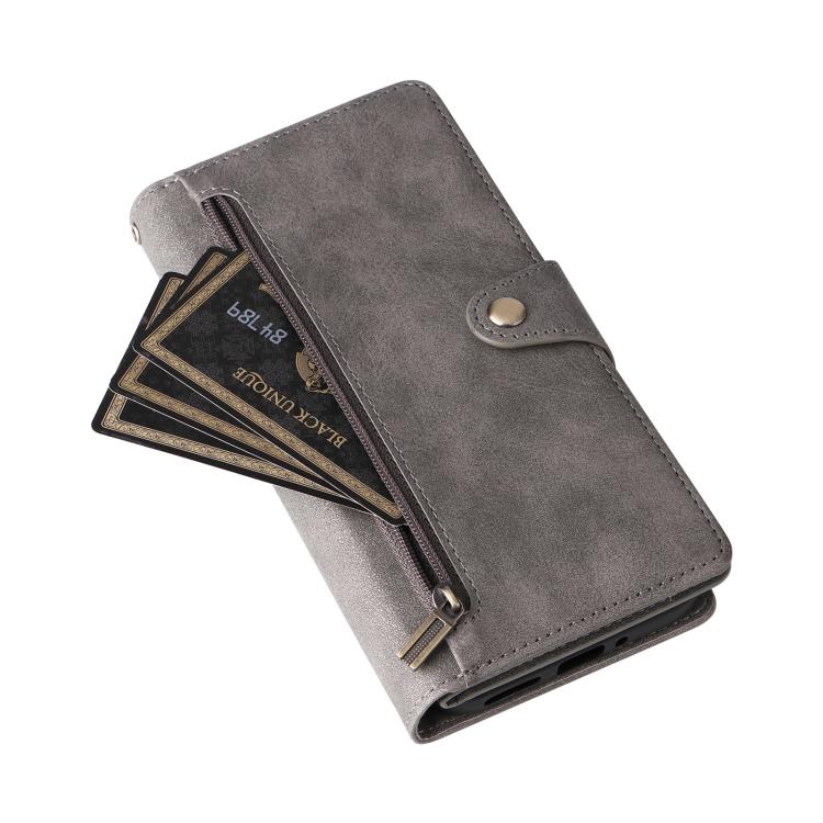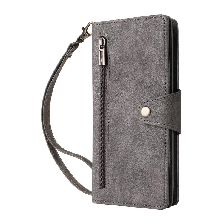 Estuche de Cuero con Tres Pliegues y Hebilla de Remache para Google Pixel 9A (Gris)