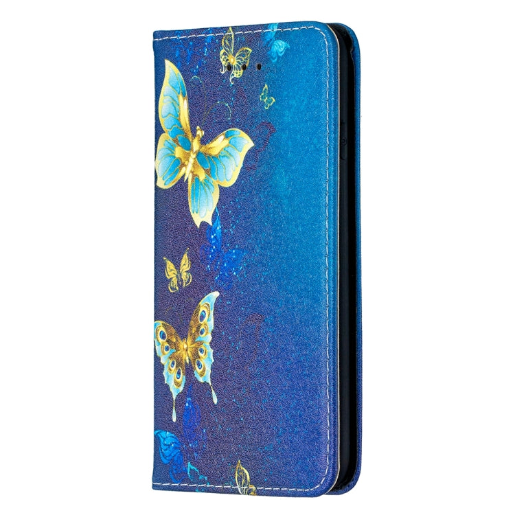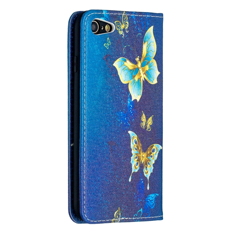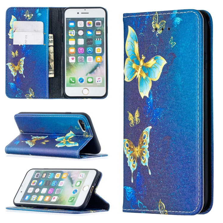 Estuche de Cuero de Pu para iPhone 8 y 7 con Tapa Horizontal Magnética Invisible, Soporte, Ranuras para Tarjetas y Billetera (Mariposas Doradas)