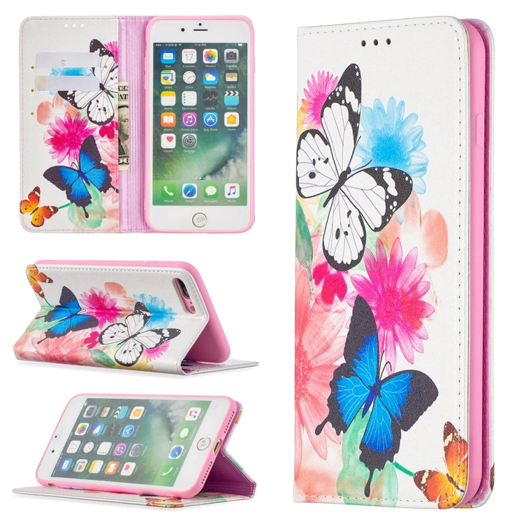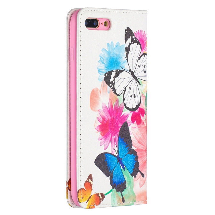 Estuche de Cuero de Pu para iPhone 8 Plus y 7 Plus con Tapa Horizontal Magnética, Soporte, Ranuras para Tarjetas y Billetera (Dos Mariposas)