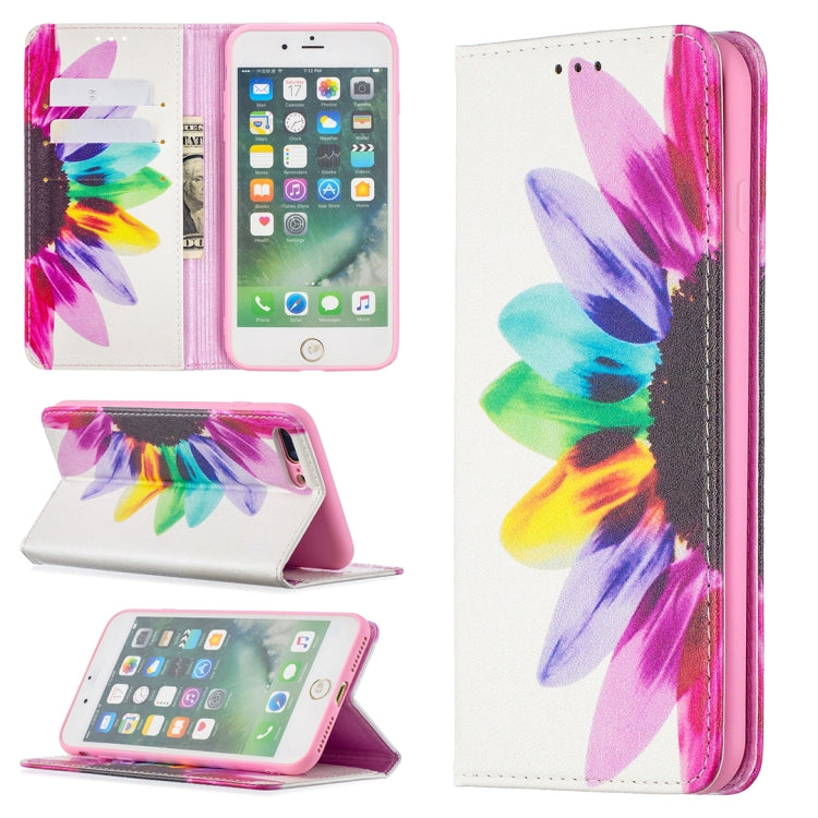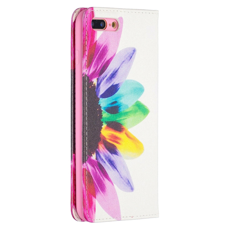 Estuche de Cuero de Pu para iPhone 8 Plus y 7 Plus con Tapa Magnética Horizontal Soporte Ranuras y Billetera (Sun Flower)