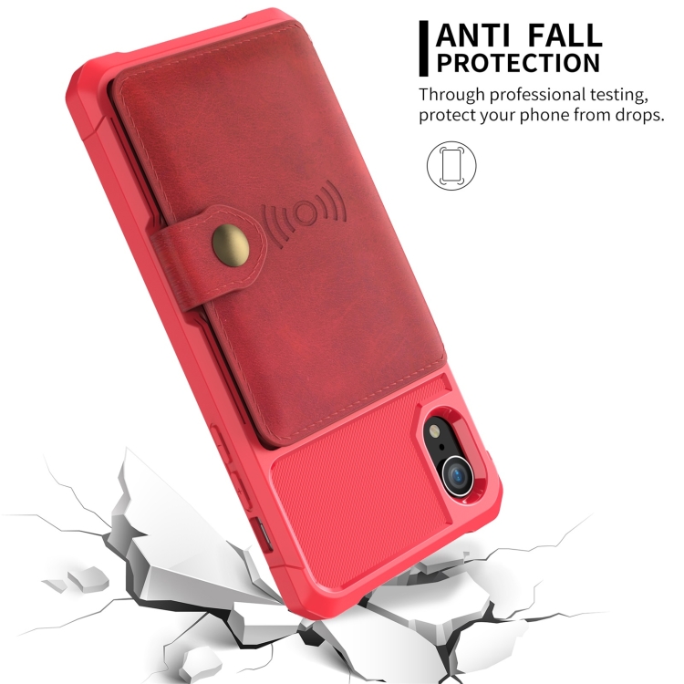Estuche de Cuero para Tarjeta Billetera Magnética iPhone Xr (Rojo)