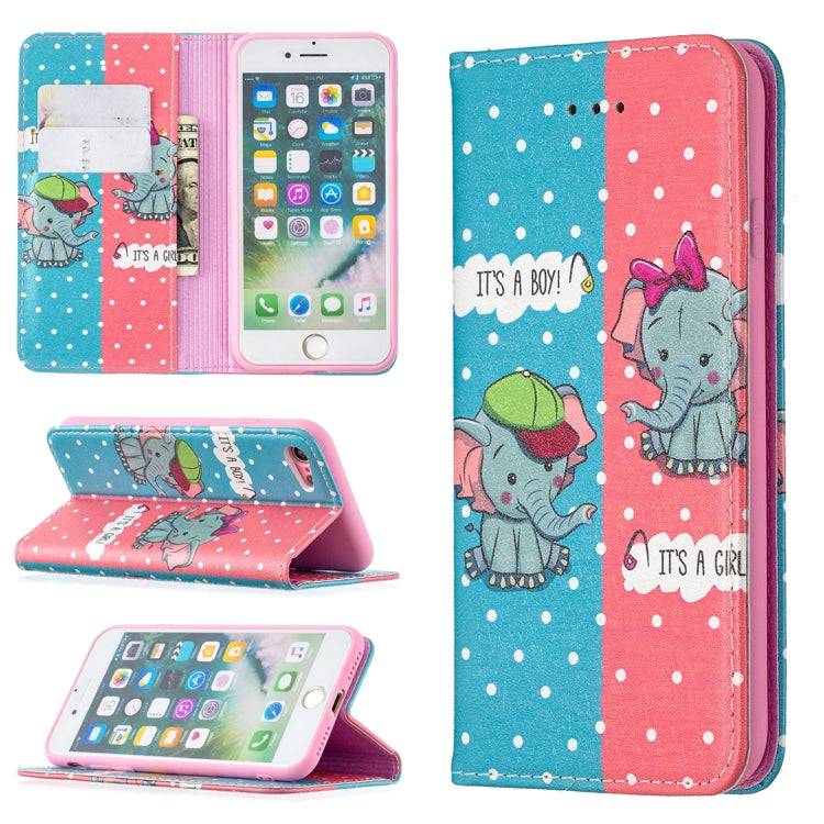 Estuche de Cuero PU para iPhone 8 y 7 con Tapa Horizontal Magnética, Soporte y Ranuras para Tarjetas (Elefante)