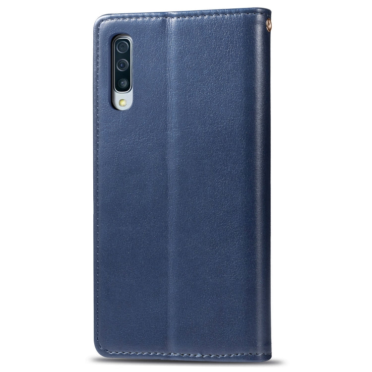 Estuche de Cuero Retro para Galaxy A70 con Hebilla, Ranura para Tarjeta, Billetera y Soporte (Azul)