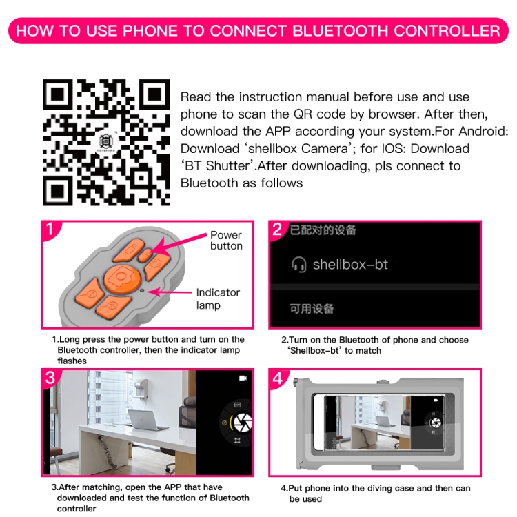 4. Conexión Bluetooth: fácil de usar, admite cambiar las cámaras delantera y trasera, elija tomar fotografías o videos, acercar o alejar a través del controlador de la cámara Bluetooth