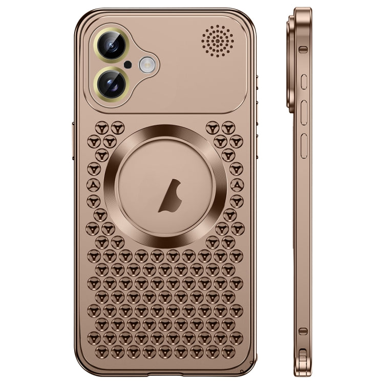 Estuche Magnético de Metal con Aromaterapia y Hebilla de Resorte para iPhone 16 (Dorado)