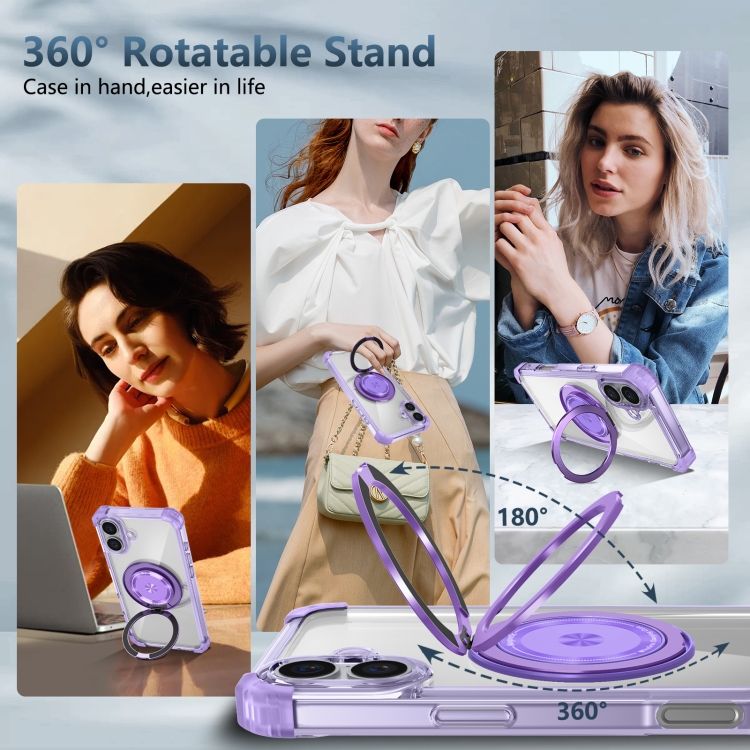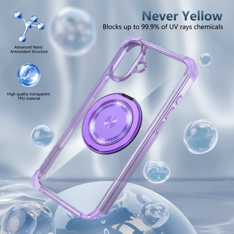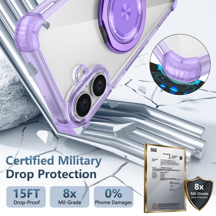 Estuche Magnético Magsafe iPhone 16 Plus Patrón Cd Escudo Dorado Soporte Giratorio (Morado Transparente)