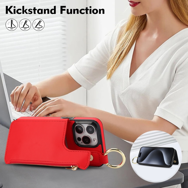 Estuche para Teléfono iPhone 11 Pro Max Rfld con Cremallera y Anillo Doble Hebilla Antirrobo (Rojo)