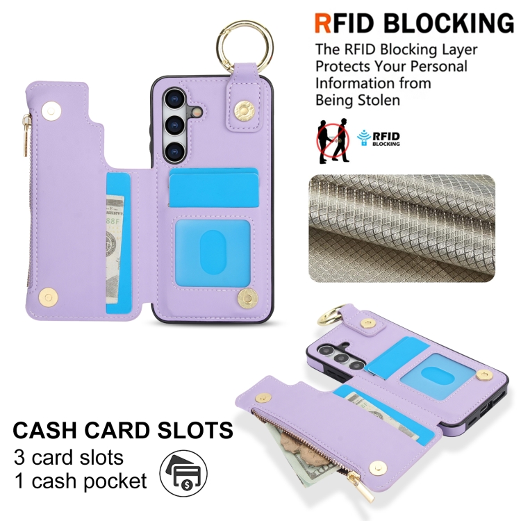 Estuche para Teléfono Samsung Galaxy A35 5G Rfld con Cremallera y Anillo Doble Hebilla Antirrobo (Morado)