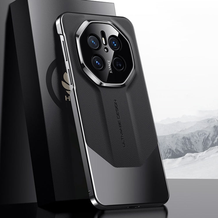 Estuche para Teléfono Huawei Mate 70 con Diseño Imitación Galvanizada de Platino (Negro)