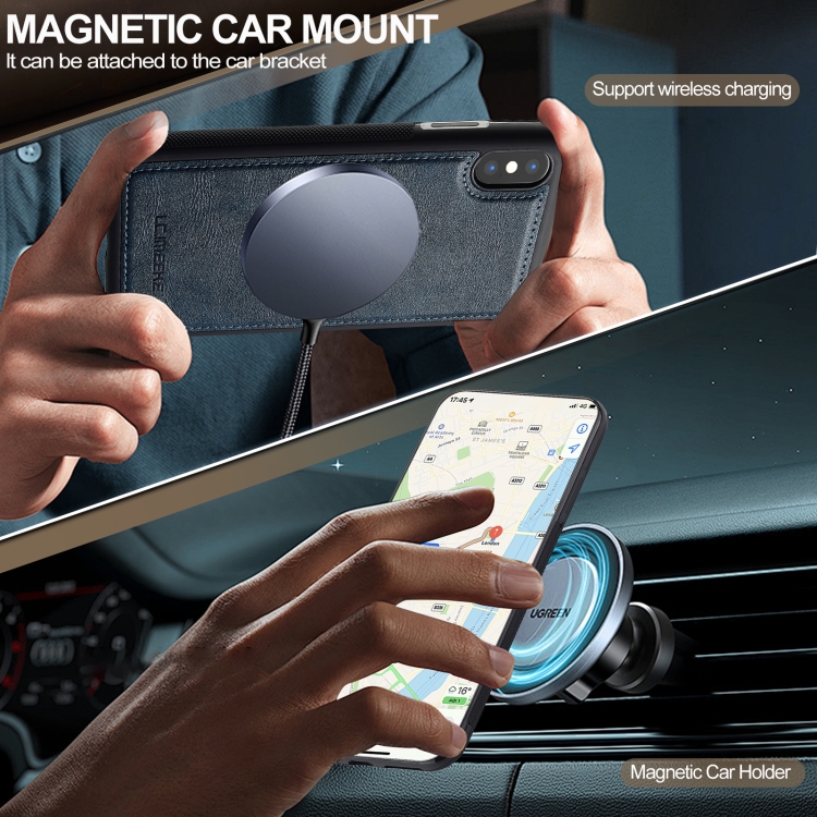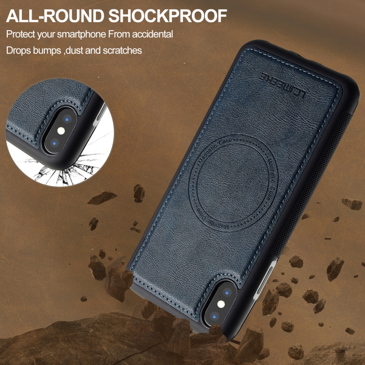 Estuche para Teléfono Lc.Imeeke L5 Series con Funda para Tarjeta Rfid Desmontable Magsafe para iPhone Xs/X (Azul)