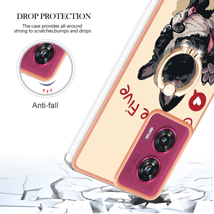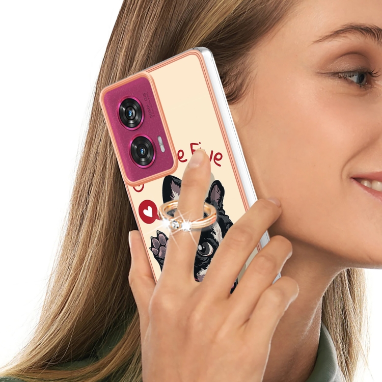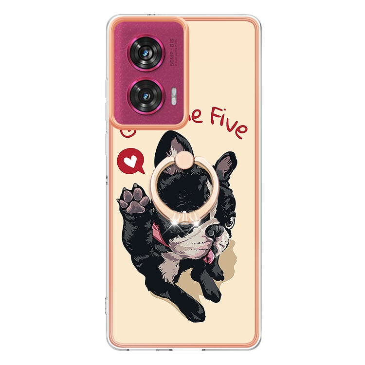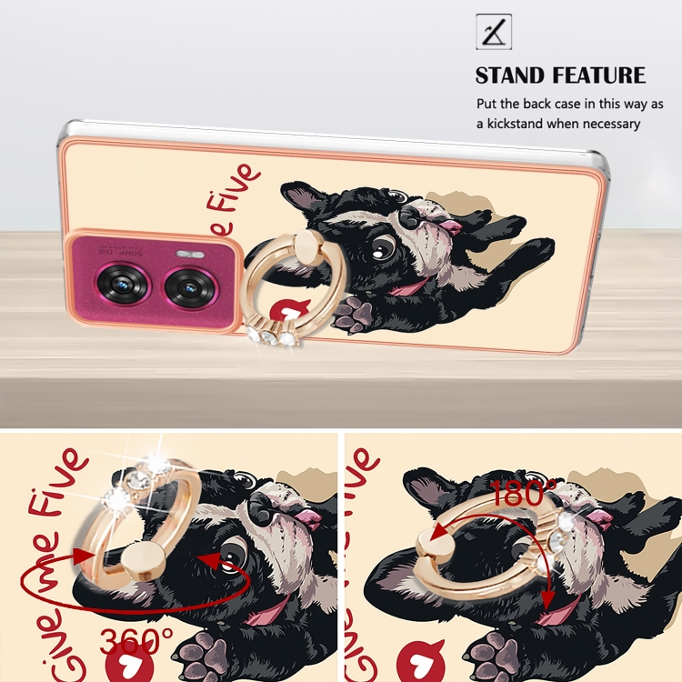 Estuche para Motorola Edge 50 Fusion con Galvanoplastia Doble Cara IMD y Soporte para Anillo (Perro de la Suerte)