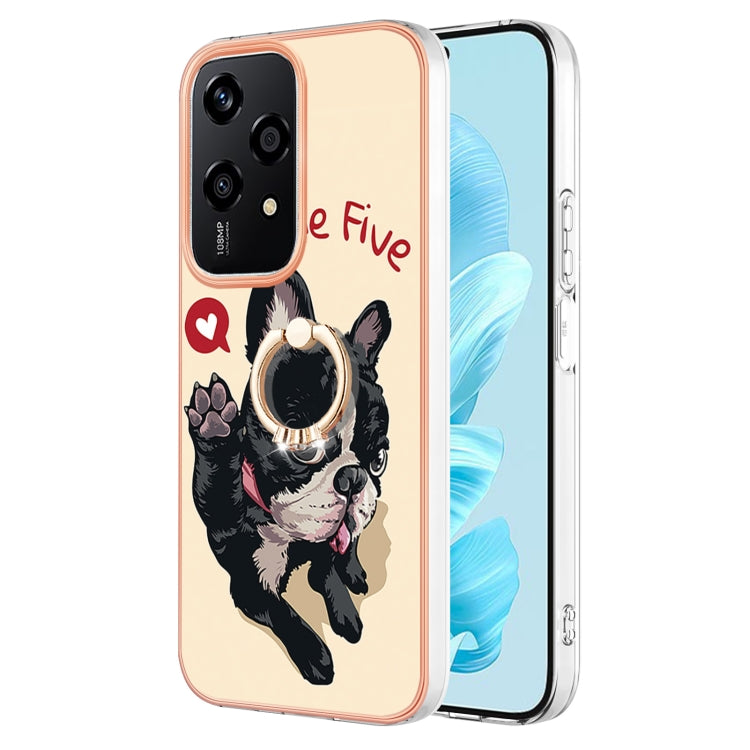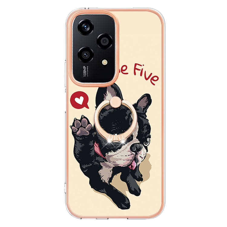 Estuche para Honor 200 Lite con Galvanoplastia Global Doble Cara IMD y Soporte para Anillo (Perro de la Suerte)