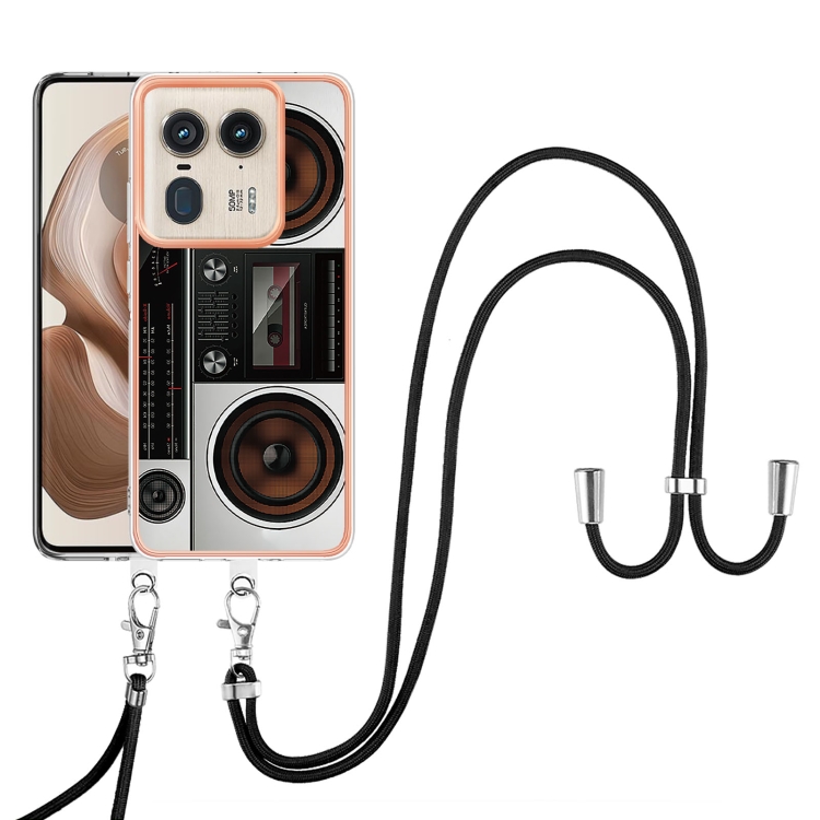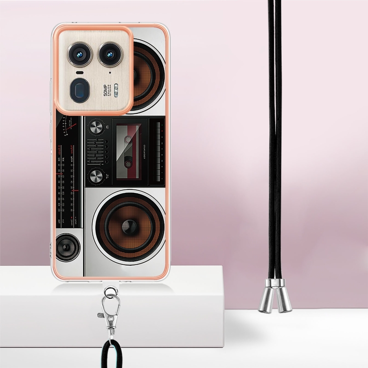 Estuche para Teléfono Motorola Edge 50 Ultra con IMD Doble Cara Galvanizada y Cordón (Radio Retro)