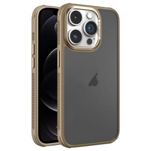 Estuche para Teléfono iPhone 12 Pro Marco Metal Esmerilado Piel Enfriamiento (Dorado)