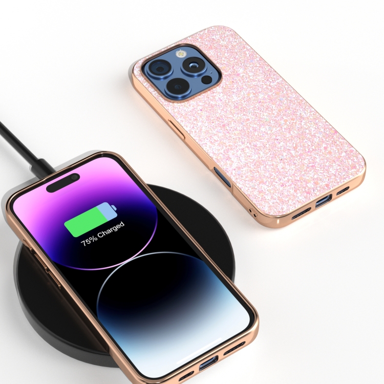 Estuche para Teléfono iPhone 16 Pro Max Marco Galvanizado Purpurina (Rosa)
