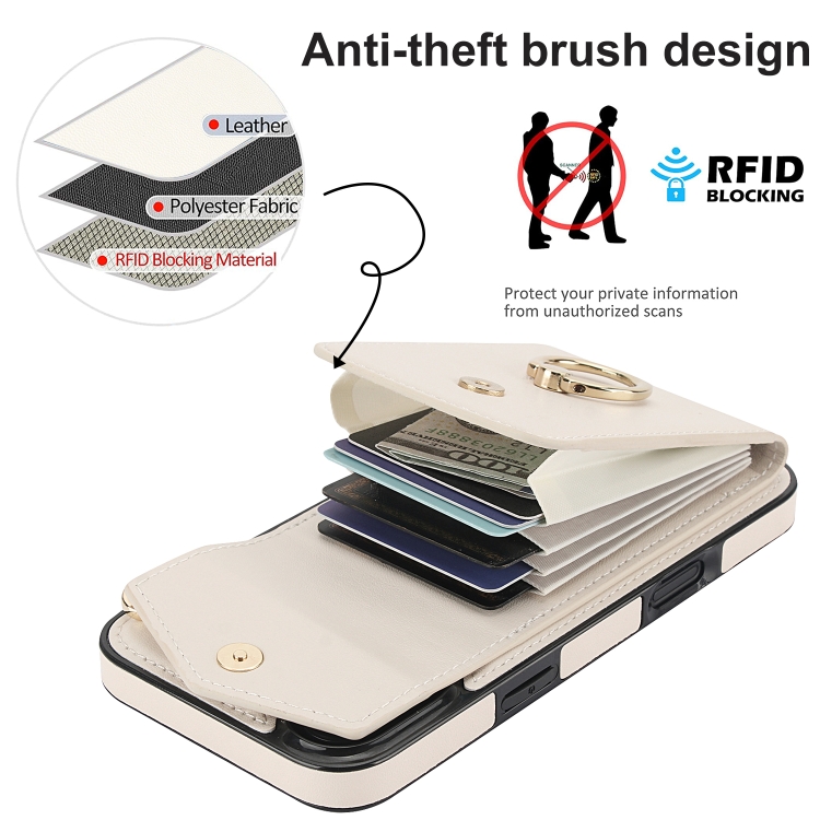 Estuche para Teléfono iPhone 16 con Ranura para Tarjeta Rfid y Soporte de Anillo (Beige)