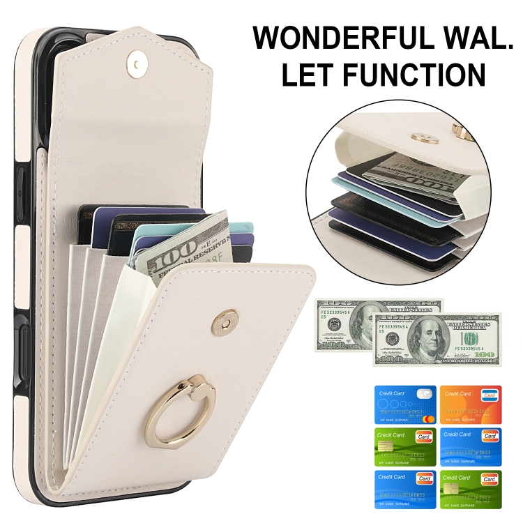 Estuche para Teléfono iPhone 16 Plus Ranura Tarjeta Rfid Soporte Anillo (Beige)