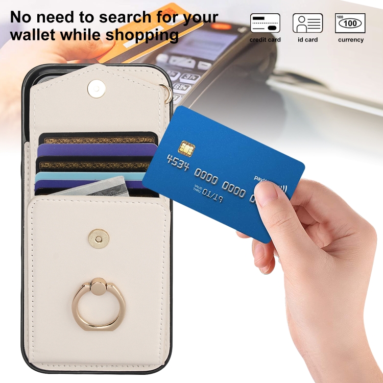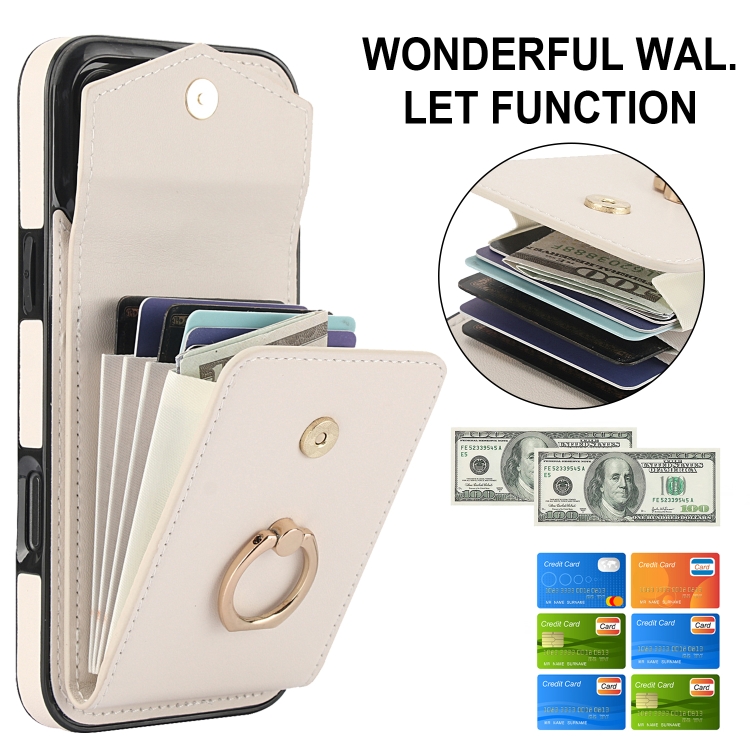 Estuche para Teléfono iPhone 16 Pro Max Ranura Tarjeta Rfid Soporte Anillo (Beige)