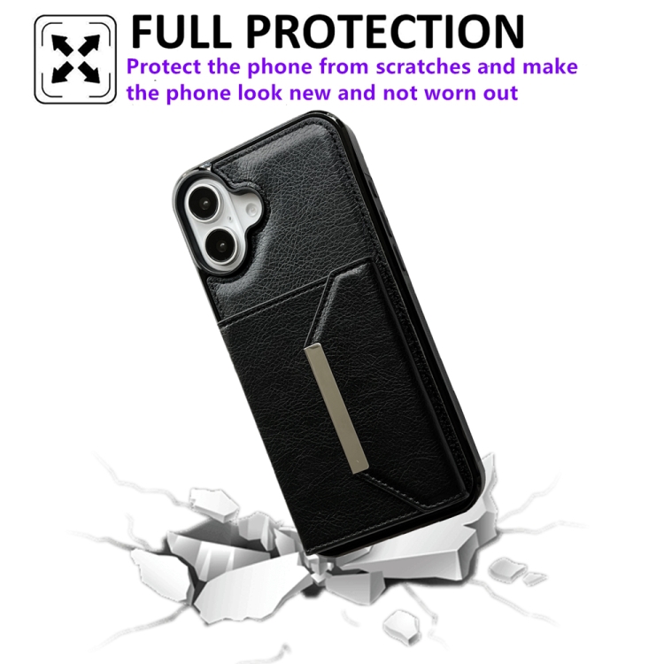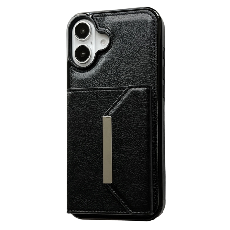 Estuche para Teléfono iPhone 16 Plus Ranuras para Tarjetas Hebilla de Metal (Negro)