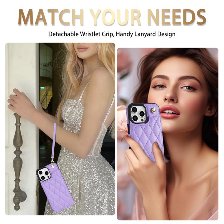 Estuche para Teléfono iPhone 12 Pro Max Ranuras para Tarjetas Hebilla Doble Cordón (Morado)