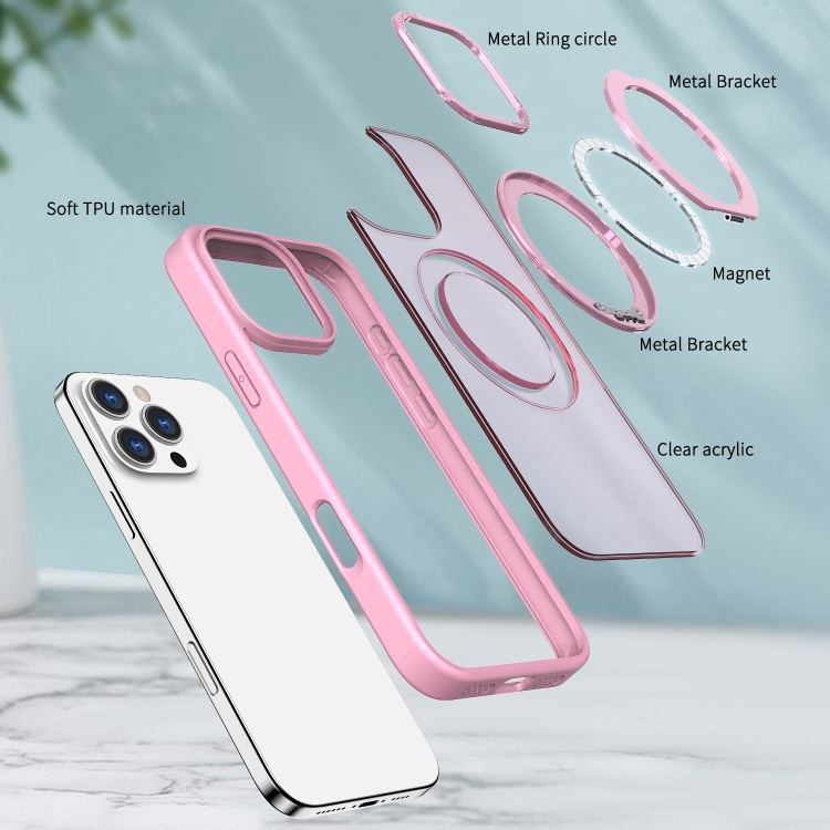 Estuche para Teléfono Serie Wing con Soporte de Anillo Magnético Magsafe para iPhone 16 Pro Max (Rosa)