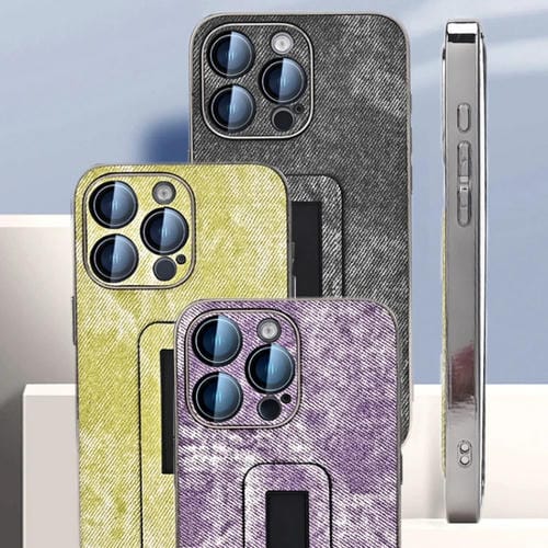 Estuche para Teléfono iPhone 13 Pro Max Soporte Empuje Tracción Galvanizado (Azul)