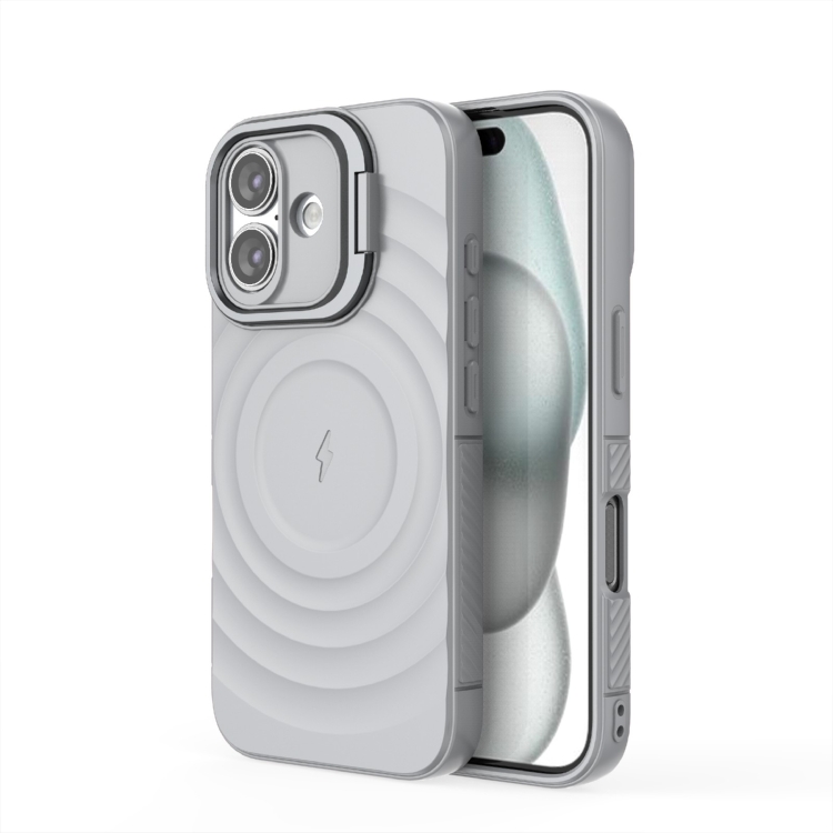 Estuche para Teléfono Magsafe iPhone 16 Soporte Marco Lente Corrugado (Gris)