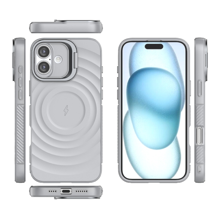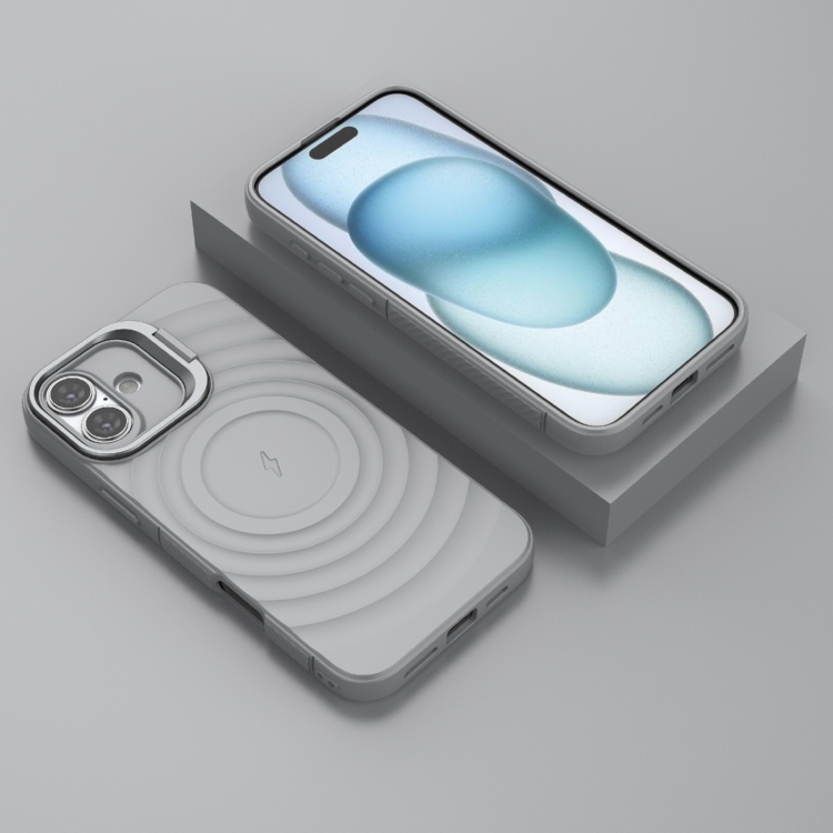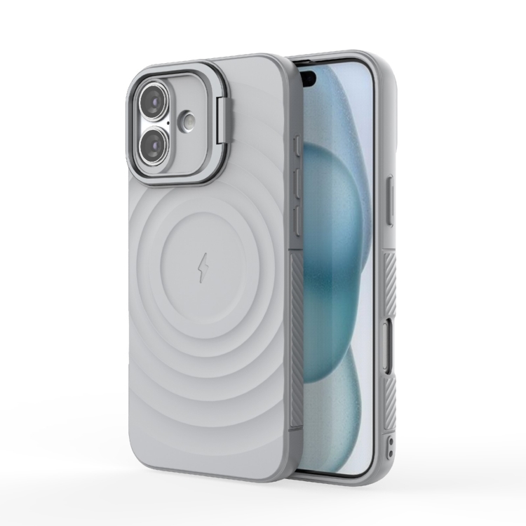 Estuche para teléfono iPhone 16 Plus soporte marco Lente corrugado Magsafe (Gris)