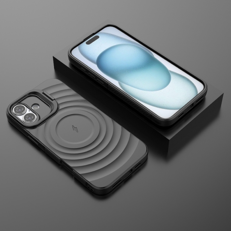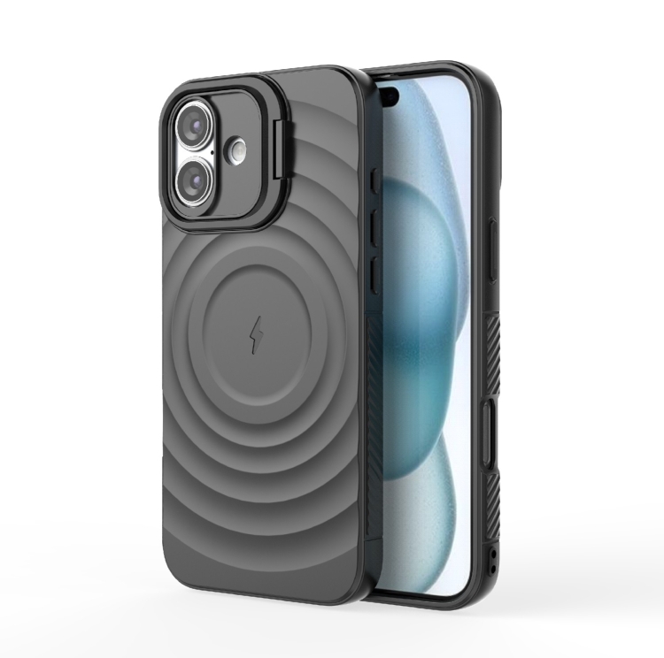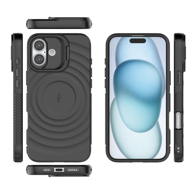 Estuche para Teléfono Magsafe iPhone 16 Plus Soporte Marco de Lente (Negro)