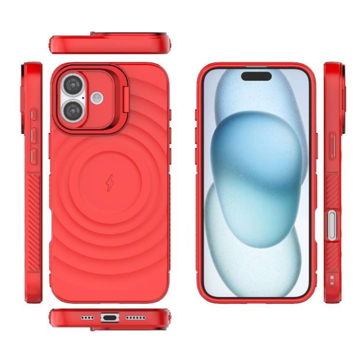 Estuche para Teléfono Magsafe iPhone 16 Plus Soporte Marco Lente Corrugado (Rojo)