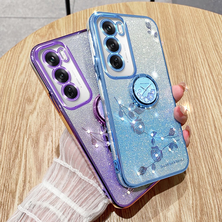 Estuche para Teléfono con Todo Incluido con Anillo de Flores Inmortales con Purpurina y Degradado Global para Oppo Reno12 (Morado)