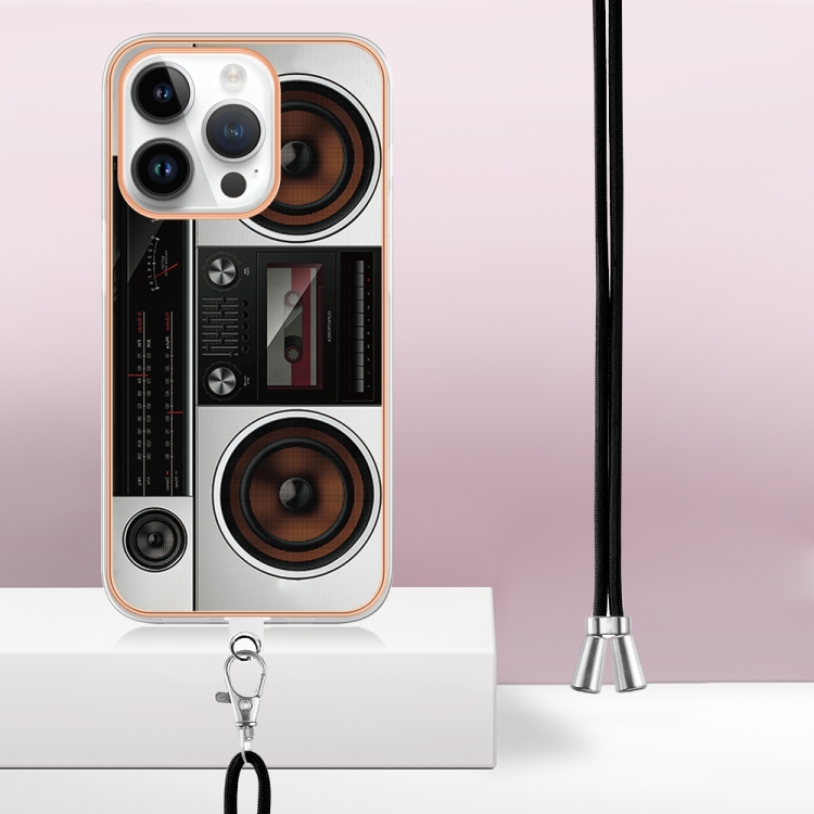 Estuche para teléfono Imd doble cara con galvanoplastia y cordón para iPhone 16 Pro Max (Radio Retro)