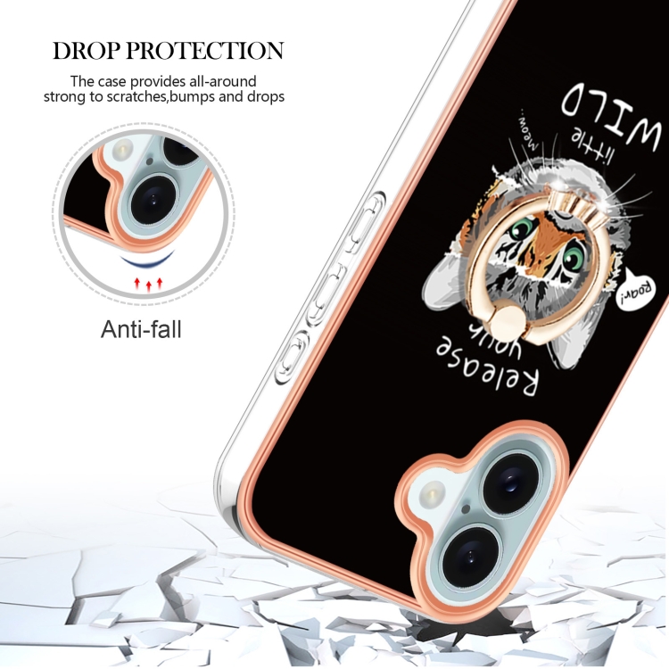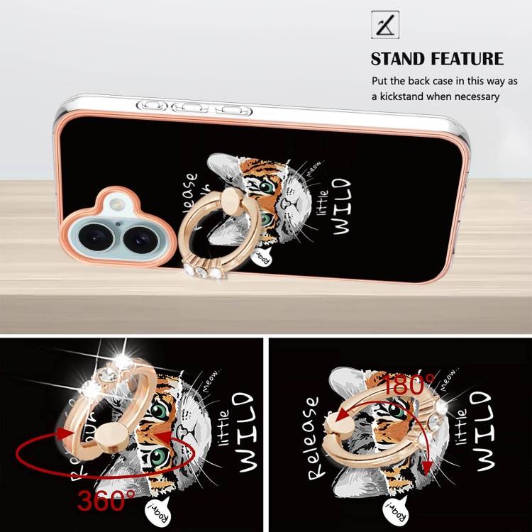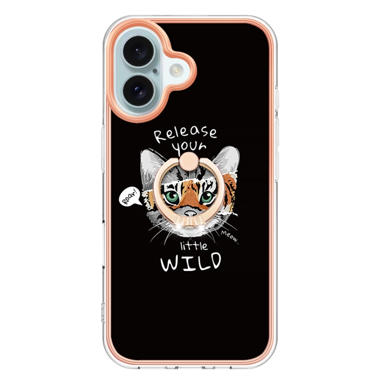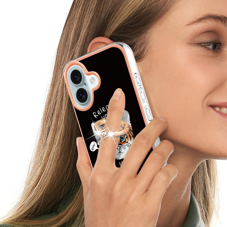 Estuche para Teléfono Imd Doble Cara con Galvanoplastia y Soporte para Anillo para iPhone 16 (Crecimiento Natural)