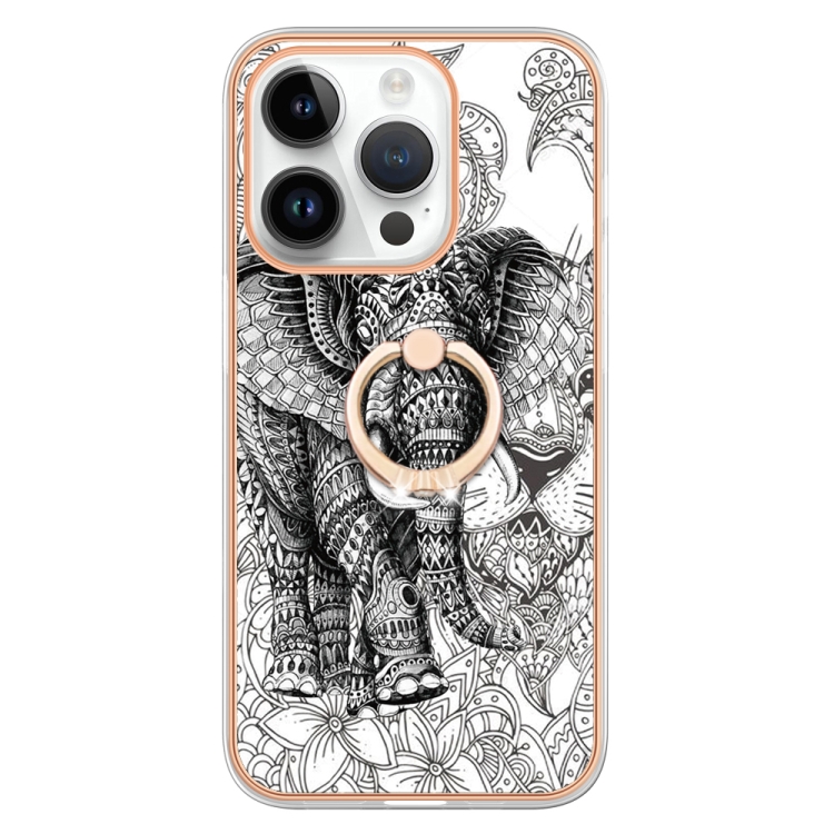 Estuche para Teléfono Imd Doble Cara Galvanoplastia Soporte Anillo iPhone 16 Pro Max (Elefante Tótem)