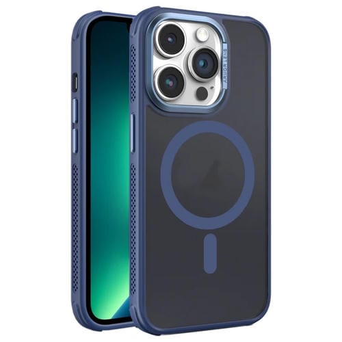 Estuche para Teléfono Magsafe iPhone 13 Pro Max Marco de Lente Metal Esmerilado Sensación de Piel Enfriamiento Lateral (Azul)