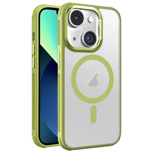 Estuche para Teléfono Magsafe iPhone 13 Marco Metal Esmerilado Piel Enfriamiento (Verde)