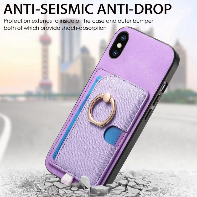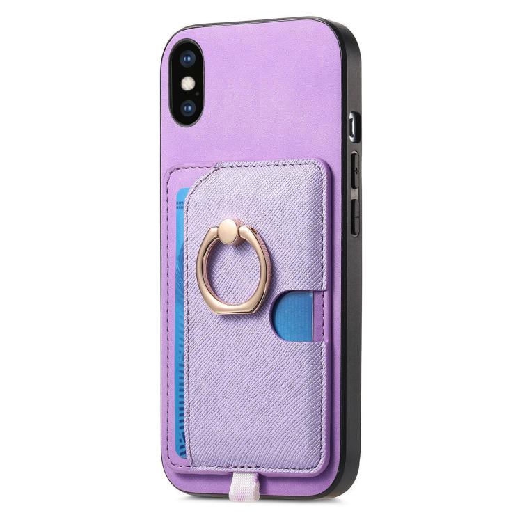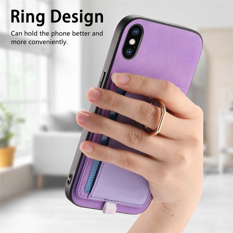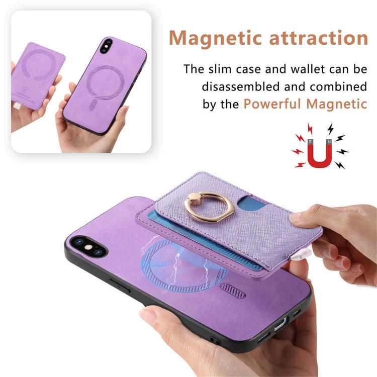 Estuche para Teléfono Magsafe iPhone X/Xs Ranuras Tarjetas Anillo Lateral Cuero Diseño Retro Cruzado (Morado)