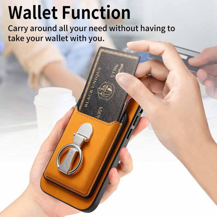 Funda Retro Plegable con Anillo y Tarjetero Magsafe para iPhone 16 Plus (Amarilla)