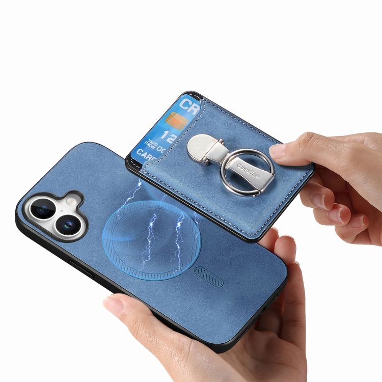 Funda Retro Plegable con Anillo y Tarjetero Magsafe para iPhone 16 Plus (Azul)