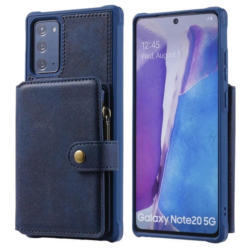 Estuche Protector Samsung Galaxy Note20 con Cremallera Ranuras Tarjetas Soporte Fotos Función Billetera (Azul)