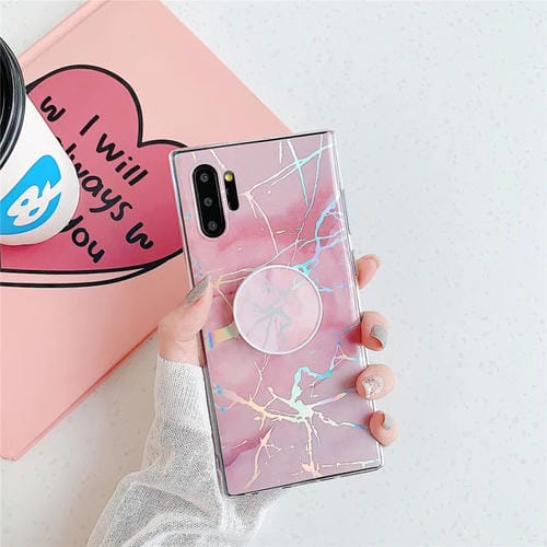 Estuche Protector TPU para Galaxy Note10 + Soporte Plegable Mármol (Rosa)